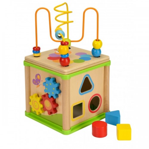 - Among the games in the cube there is a sorter and cubes, a labyrinth, rotating gears, a clock, a spiral labyrinth.
