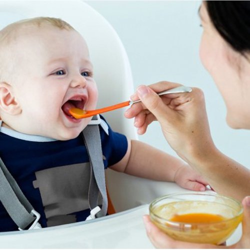 - Flat tip is great for cleaning up around baby's mouth and inside container