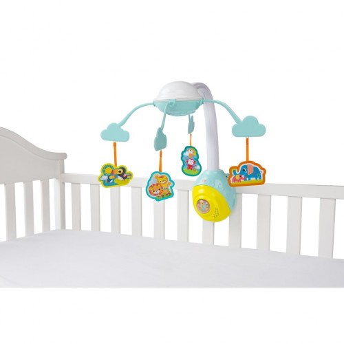 - The Bright Starts™ Soothing Safari 2-in-1 Mobile™ features over 6 calming melodies and 4 fun characters to captivate baby.
