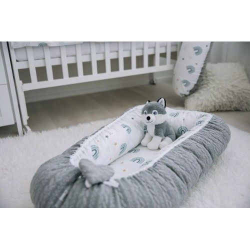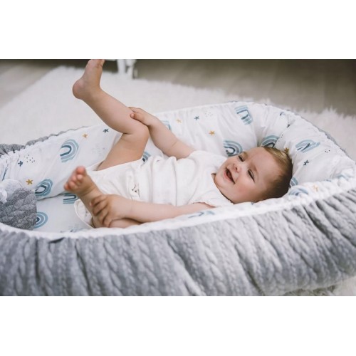 The nest is designed for sleeping, resting and dressing and protects the baby, prevents possible falls and gives him a feeling of safety and warmth. The baby will feel safe and comfortable in the nest, as in his mother's belly. It can be placed in a cot, on a bed, on a changing surface, on a sofa or even on the floor. An extremely popular accessory for modern moms. It can be used on both sides and is easy to carry.- Dimensions: 95 x 60 x 17 cm