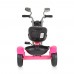 A tricycle suitable for children aged 3 years and older, with a maximum weight capacity of 25 kg. It features a comfortable seat with a backrest that can be adjusted to two positions and a handlebar for easy steering. The tricycle is equipped with a light-up front headlight with melodies and retro-style mirrors on the handlebar.- Soft EVA tires with mudguards