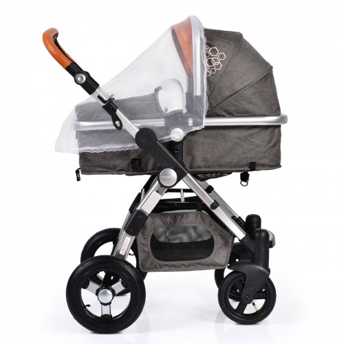 - The set includes: foot cover for the seat unit; compact diaper bag; rain cover; mosquito net; tire pump.