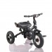 - The tricycle is equiped with 2 footrests - one for smaller children and foldable footrest for bigger children. The product is with inflatable wheels. The front wheel is with free wheel function and when activated the front wheel can move feely, but the pedals are fixed and cannot control the wheel. The product is with luxurious canopy with visor and small window, which can be adjusted to 2 bending positions.