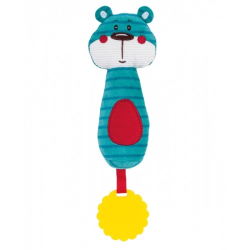- The toy has a teether and additionally - when squeezed - makes an interesting sound.