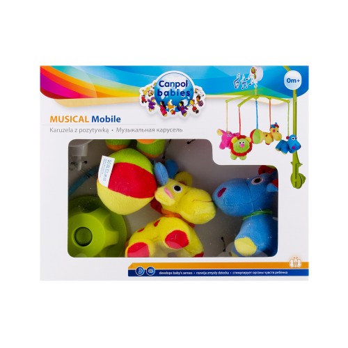 - Colourful musical mobile with music box is designed for children who do not yet move on their own.