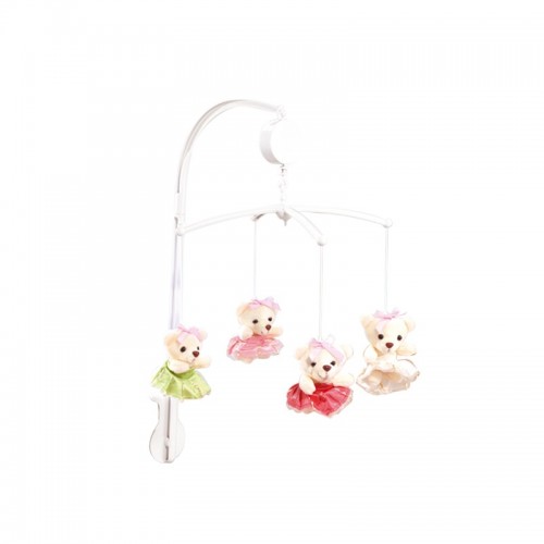 This musical mobile is suitable for newborn babies. Gentle melodies help baby to fall asleep easier. The special soothing motion of the mobile captures baby’s attention and keeps it engaged. Each plush toy dances overhead, baby will love to watch these characters spin. This toy helps visual and hearing development.- Battery operated music box with gentle melodies