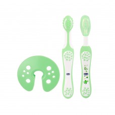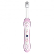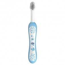 This Chicco toothbrush, with extra-soft tapered bristles and ergonomic handle covered in soft, non-s..