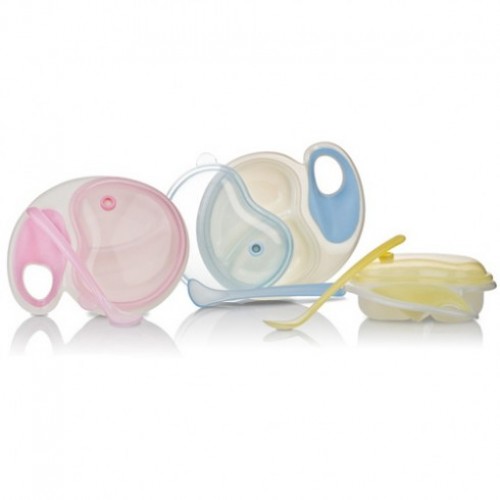 Our sectioned Easy Grip™ Bowl is perfect for feeding time because it is easy for mom to hold and has multiple compartments for different foods. The soft ergonomic design of the thumb rest allows the bowl to be held with either hand in a comfortable and more natural feeding position. It comes with a seal-tight lid that features an automatic steam vent which allows the sealed bowl to be microwaved safely. This unique feature prevents nasty splashes in the microwave and allows the bowl to go from refrigerator to microwave without any problems. This bowl comes complete with a uniquely designed long handle spoon which helps make feeding time easier for mom and baby. Its long handle design makes reaching the bottom of taller baby jars and bowls easy - no more messy finger tips!Nuby Easy Grip™ Bowl with Long Handle Spoon