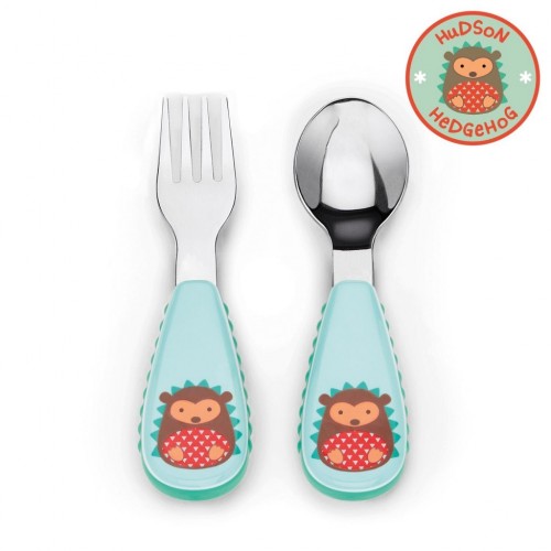 This adorable fork & spoon has soft side grips so it's easy for little ones to hold. Stainless steel heads make the utensils feel very grown up for little ones!