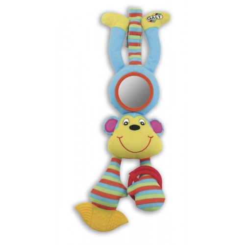 - Attached to the handle of a rearward facing car seat, the friendly monkey will hang in front of baby