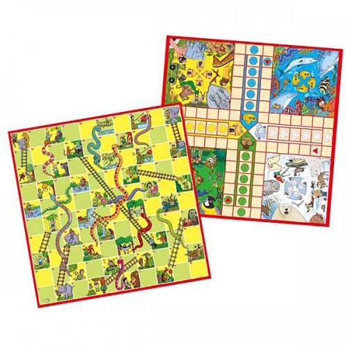 2 traditional family games for 2 to 4 players, beautifully illustrated with fun animal themes. Jungle animals will help or hinder your progress on the Snakes & Ladders board. When playing Ludo, become an explorer in the Arctic, African Plains, Tropical Rainforest or Coral Sea. Contents: double-sided playing board, counters, shaker, dice, game instructions.
