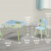 - The set is strong and light at the same time and can be easily moved from the children's room to the living room, bedroom or veranda - to bring the child closer to his parents. This is a great gift for your child. With its modern, fun design in blue and yellow with fun Spirits and perfect dimensions, the table and chair set fits into any nursery - whether it's a boy or a girl.