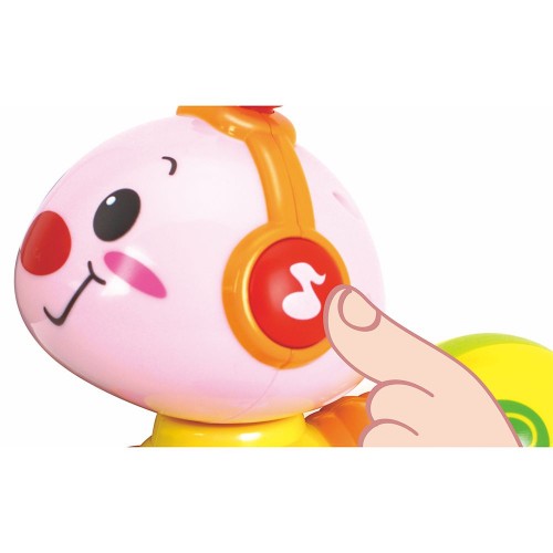 - This wiggle worm's head rotates and plays fun sounds; press a button to hear 6 different kids' songs; colorful wheels that rattle and flexible body will inspire curiosity and the desire to play and learn