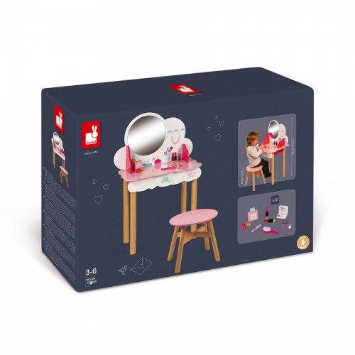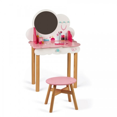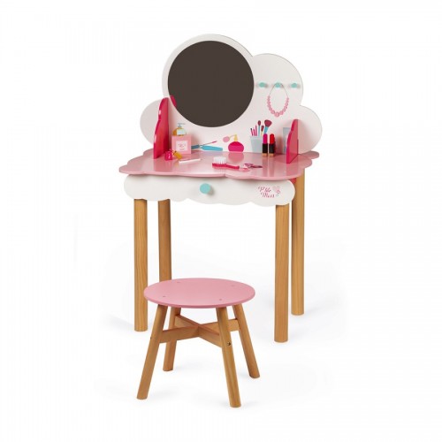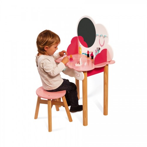 - It's time to get ready to go out! This wooden dressing table allows children from 3 years old to sit on their stool to imitate grown-ups and get ready at the same time as them!