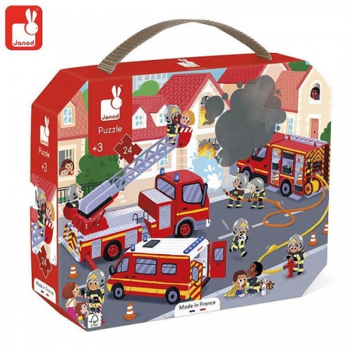 - Here is a pretty 24-piece cardboard puzzle on the theme of firefighters, ideal for children from 3 years old