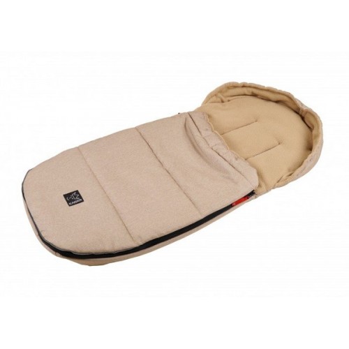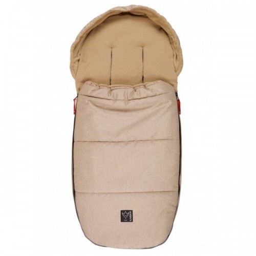 Shapely stroller footmuff with coloured 2-way all-round zip, which is a beautiful colour contrast. The upper part is removable and the lower part can be used separately as a mat. The head area can be drawn together into a mummy shape and this special shape offers good protection from the wind. The draw cord is stored in a safety pocket. Anti-slip in the back area and reflective strips in the foot area. The generous belt release is new, allowing quick and uncomplicated attachement without lengthy threading in and out. The footmuff fits into almost all popular stroller models. The coated exterior material is dirt and water repellent as well as breathable.