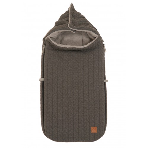 The pushchair footmuff Knitty by Kaiser has a beautiful look and fits almost all standard strollers. In addition, it is absolutely practical, because with the help of the incorporated Velcro, the headboard can be converted as a cap and protects in the blink of an eye your favorite from the wind and cold. Another plus is the completely removable front with a full zip.- cozy and cuddly warm stroller footmuff
