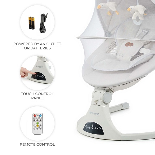 - 5 swing intensity levels with built-in timer (8, 15, or 30 minutes)