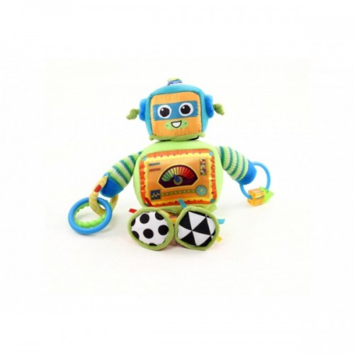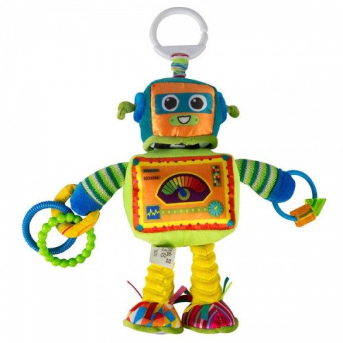 Use the peekaboo mirror for facial recognition fun. With busy beads and textured rings to rattle together, baby will love exploring this multi-sensory toy. Babies from birth will love Rusty’s knotted ears too – perfect for little fingers to discover. Keep Rusty the Robot close with the easy on-the-go clip.