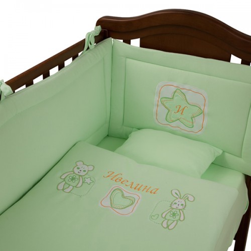 Ласка 5-elements Bedding Set Bo and Miya with baby name embroidery