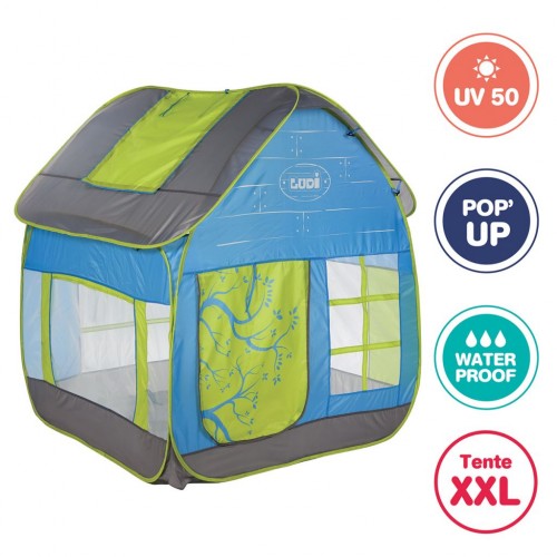 - More than just a tent, the “Cottage” house stands out with its durable and waterproof floor, offering a clean and comfortable play area. Its UV-resistant polyester roof protects children from the sun’s rays while allowing the house to remain in the garden without worry. With its pop-up system, it sets up and packs down in a flash! Once folded, it easily fits behind a door or stores in its included carry bag.