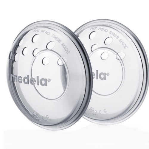 Medela Breast shells protect sore or cracked nipples from friction before and after breastfeeding, giving the sensitive breast tissue time to heal. The soft, flexible silicone membrane feels comfortable on the skin and adapts to your breast. The position of the opening of the Medela breast shells is directly above the nipple.