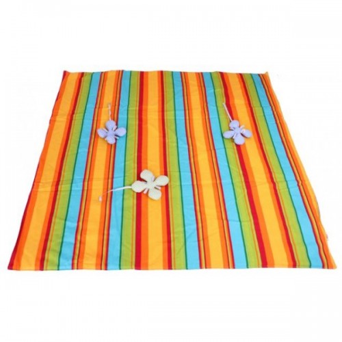The underside is waterproof and padded for outdoor use and the surface is made of 100% cotton.