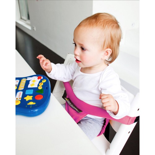 The Minichair is a handy ‘harness’ that you can use to transform any chair into a child seat in one minute. Super convenient when you’re on the go, just put it in your changing bag, and you will be able to use it to feed your child or allow him or her to play safely at a table, wherever you are. Apart from every kind of chair imaginable, we have also seen people using the Minichair on a shopping trolley, on a sledge, on an airplane, at camping sites, with hip spica cast trousers, on a wheelchair and even on a Zimmer frame!