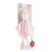 Molang, the lovable character from the same-titled TV series and well-known from social media, is an indispensable companion during the first few months of a baby's life. The adorable cuddle blankie can be used anywhere, whether in the cot, pram or car seat. Molang is a figurative soft toy attached to the double-sided comforter in white and pink. The knots and a funny plush strawberry at the tips of the triangular cuddle cloth invite the baby to grasp and hold in a playful way.