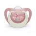 A soother, pacifier or dummy is a useful aid for relaxing your baby. The improved NUK Soother was developed in partnership with dental health experts and is based on the approved orthodontic NUK shape with an even softer, more flexible baglet which reduces the pressure on baby's jaw and teeth. Thanks to a baby-safe luminous material, the soothers radiate a soft glow in the dark and can be found quickly and easily even at night.- 18-36 m
