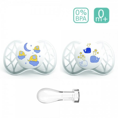 - 2 pcs. soothers with orthodontic form in the kit.