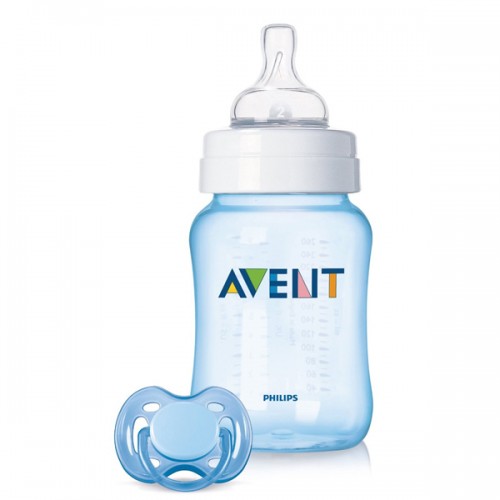 The gift set includes a Philips AVENT Classic bottle and a Freeflow Soother. The Philips AVENT Classic Bottle allows easy locking thanks to the unique pacifier flap. A clinical study proves that it reduces anxiety and colic. The unique anti-colic system, ergonomic shape for convenience and a wide range of teats with different flow rates make it ideal for any age. The soother is orthodontic, symmetrical and made of flexible silicone. The Philips AVENT solenoid is consistent with the natural development of the baby's toenails, teeth and gums, even if the soother is turned into the mouth.