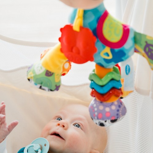 - Bright, contrasting colors and patterns stimulate the baby's visual perception.