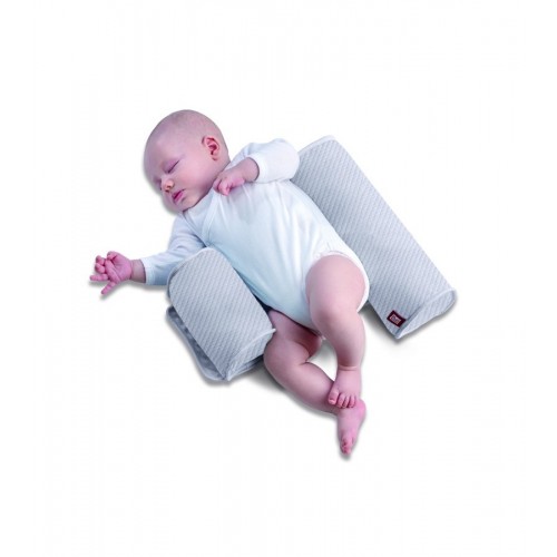 Consisting of 2 wedge cushions linked by a strip of soft cotton fabric on which baby lies, the Bébécal™ baby wedge prevents baby from turning over onto his tummy during his sleep. The width between the wedge cushions can be adjusted to baby’s size.