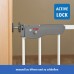 - To make sure that when the gate is locked and that little explorers can’t manage to unlock it, the safety gate has been equipped with the active-lock system – a triple movement mechanism. In other words, three actions need to be performed simultaneously to unlock the safety gate. However, it can be quickly opened with one hand by adults. Simply press the button, release the lever and lift the gate to open the stair safety gate.