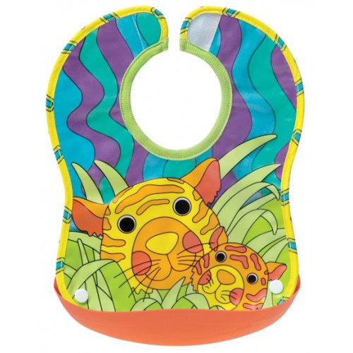 - The plastic pocket helps to "catch" crumbs and spills during meals