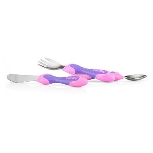 Nuby's Stainless Steel Cutlery Set is specially designed to be safe for little hands to hold and use. The cutlery set supports baby's development by promoting independent eating and helps to make mealtime a happy time! This stainless steel cutlery set encourages independent feeding and eating like a grown up!