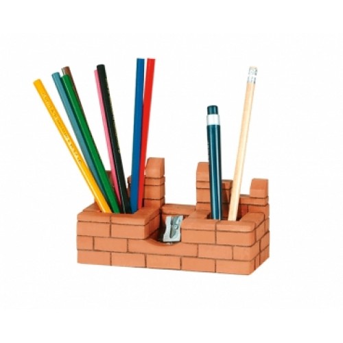 - Build with real bricks your first small castle or a pen holder by yourself.