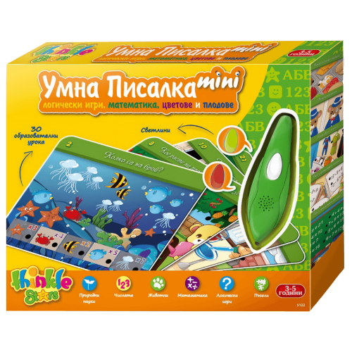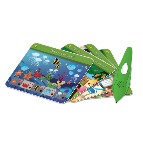 - Play mode - The child will look for answers to the questions on the cards. And the smart pen will signal the correct answers in green and encouraging melody, and the incorrect ones in red