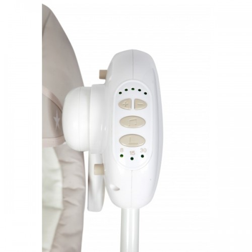 In this baby swing, the little ones can relax, swing, play and listen to music. There are 12 different melodies, with different adjustable volume levels, and 5 different swing speeds with a timer interval (8, 15 and 30 minutes.)