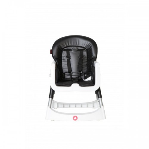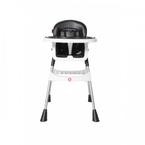 This highchair has a large detachable and adjustable tray and the seat cover is easy to remove. The seat has a 5-point safety belt. The chair can both be placed at the dinner table and the coffee table by removing the legs. Furthermore, the chair is very small when folded and, as such, easy to store.