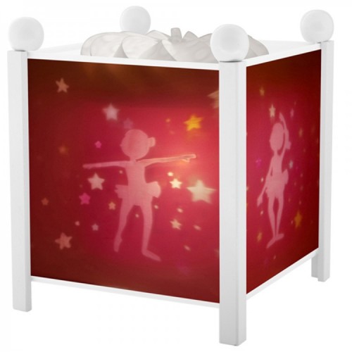 The "Magic Lantern" is a traditional nightlight which accompanies children to sleep.Inspired from an old Japanese tradition, this nightlight relaxes children when it comes to sleep.As soon as the light is "on", the heat from the bulb operates the propellor : caracters danse, a nice story going to start.This lamp complies with children lamp safety regulation : it is delivered with a bulb protector, an electrical transformer and a 10W bulb.Delivered in a giftbox.