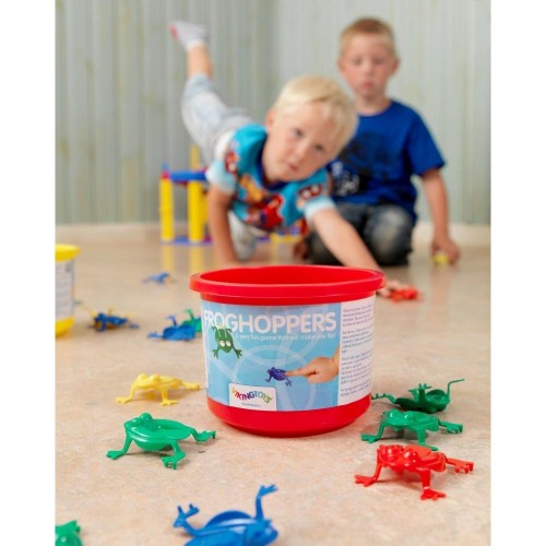 16 Brightly coloured plastic frogs in a storage bucket with lid. Try to ping the frogs into the bucket or make up your own game.