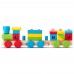 - The locomotive and the carriages are mechanically attached to each other, and the wooden elements are strung on them until the train gets a finished look.