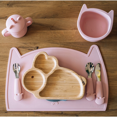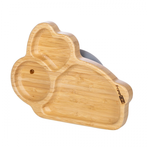 Детска чиния, изработена от бамбук с нехлъзгаща се основа за стабилно закрепяне. Прилепва стабилно към равна повърхност.Характеристики: