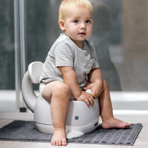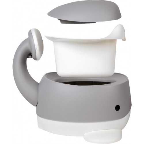 Бебешкото гърне във формата на кит има облегалка във формата на опашка и това осигурява на детето стабилно и удобно сядане.