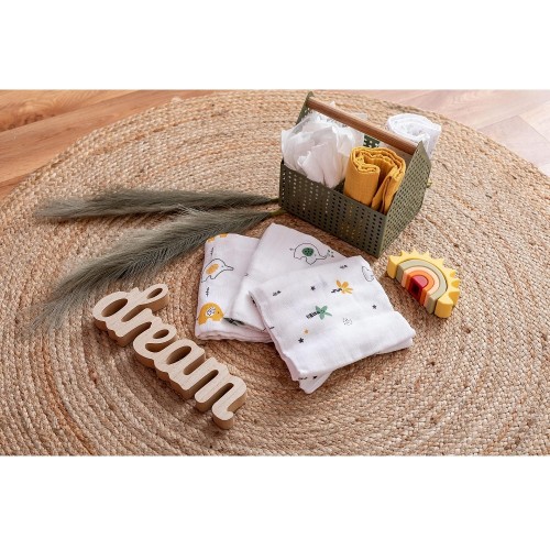 Нежни памучни, муселинови пелени, които имат много приложения. Осигуряват на бебето комфортно и уютно усещане. Подходящи са за завиване, могат са се използват като кърпа за избърсване, като пелена за повиване или като мек чаршаф.Характеристики: