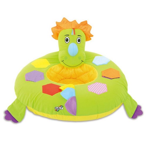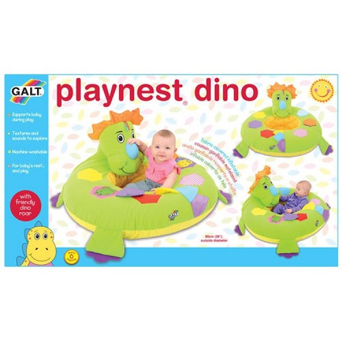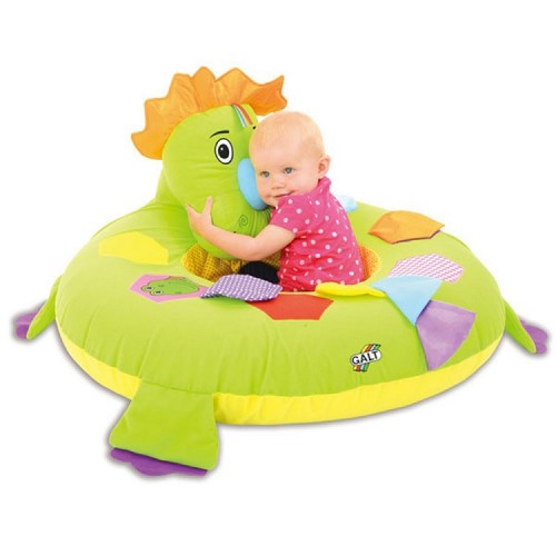 Aктивната гимнастика съдържа различни текстури и звуци, включително забавен ръмжащ звук в носа на динозавърчето. Играйте на весела игра с надникване - повдигнете двете шумкащи "странички", за да откриете жабката и динозавъра.