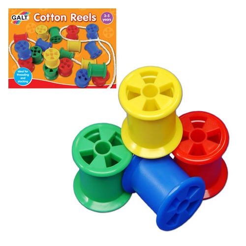 - Чрез играта си с макарите детето може да ги нанизва, сортира и подрежда по цвят.