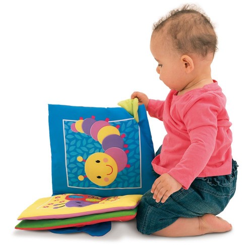 Голямата мека книжка на Galt се състои от 8 големи, текстилни страници, които издават "шумящ" звук, когато се разгръщат. На страниците са изобразени в ярки цветове релефна пчеличка, гъсеничка, която е скрита под подвижно листо, цветче, охлювче, слънчице с безопасно, бебешко огледало . Всяка страница предоставя на детето различно усещане за допир и текстура, разкрива звуци, материи и цветове.